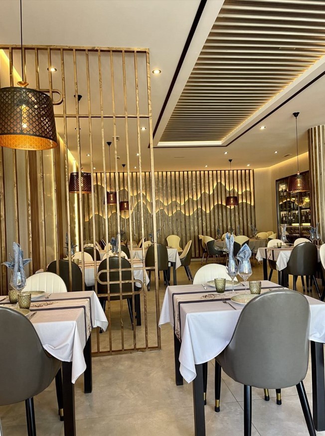 Auch der Gastraum ist sehr stilvoll und chic gestaltet. Alle Tische sind einladend eingedeckt und das Ambiente gehoben.