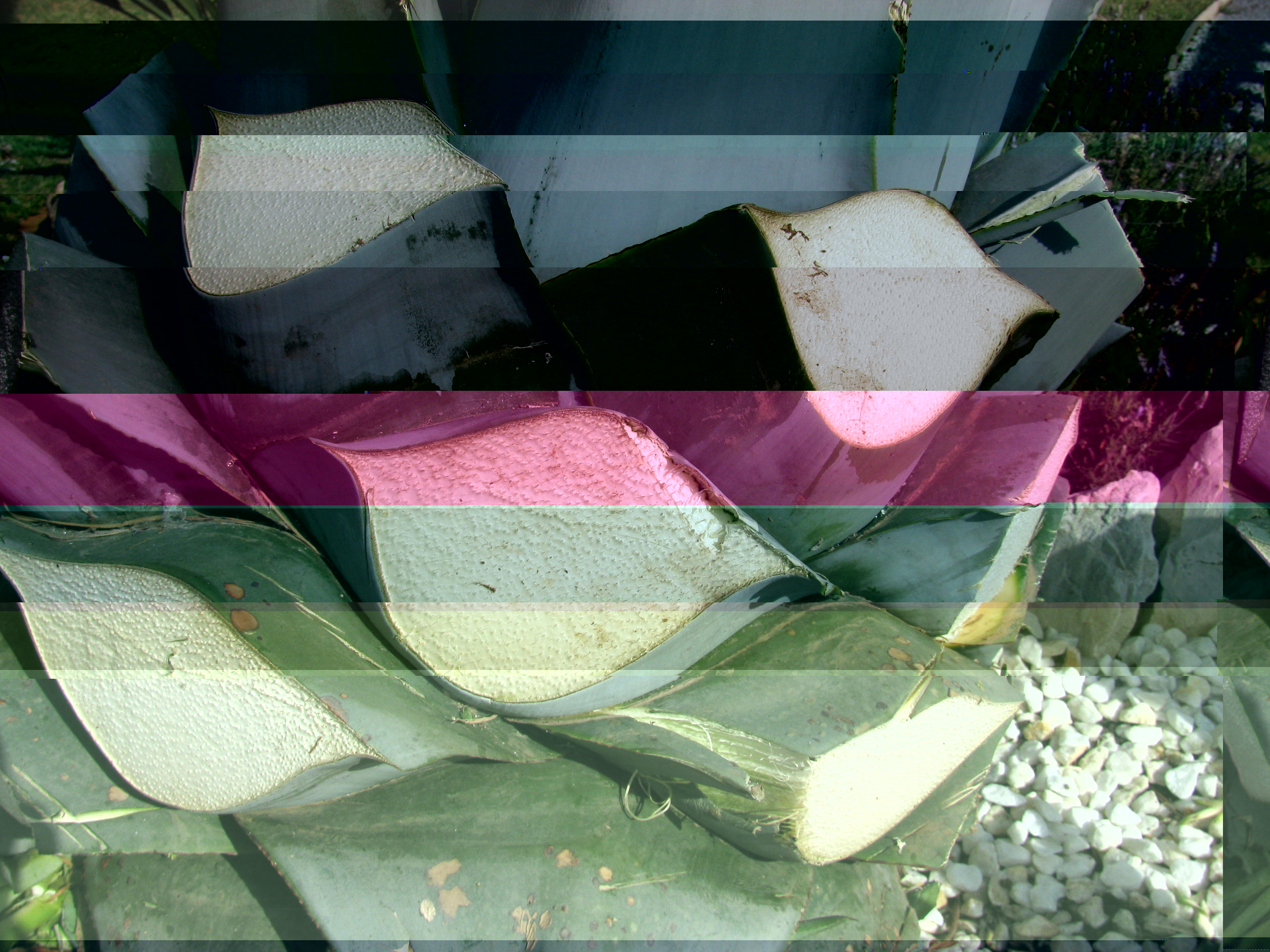 Eine etwas angetrocknete Schnittstelle eines Agaven- oder Aloevera-Blattes?