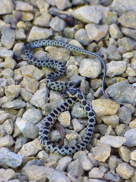 Ich hatte bis jetzt nur einmal eine Begegnung mit einer Schlange und es war die ganze Zeit das einzigste mal und dann auch noch wie wir Besuch hatten und im Gästeapp. sich diese gemuetlich machte , nicht zur Freude unseres Besuches ,aber offensichtlich fand die Schlange unsere Gesellschaft genauso unpassend wie wir ihre und sie schlängelte sich so schnell davon das ich leider keine Aufnahme von ihr machen konnte, aber meine recherche beiTante Google ergab das es in Spanien keine giftig beissenden Vertreter dieser Art gibt.