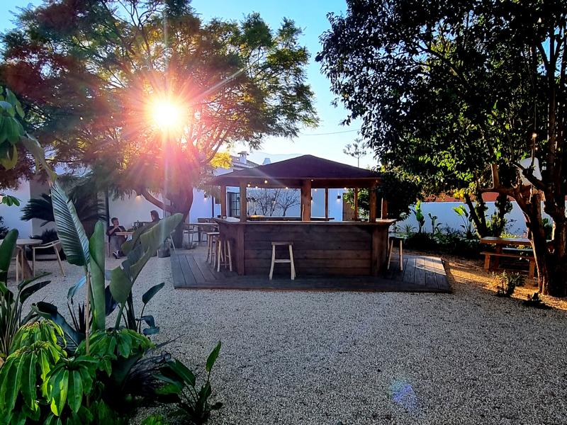 Und das ist sie: Die Bar im Zentrum des Gartens