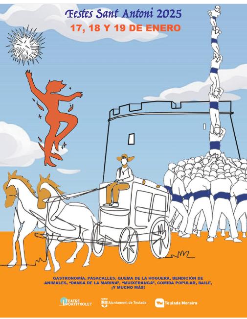 Wir werden die traditionellen Lagerfeuer „Fogueres de Sant Antoni“, die Parade „Sant Antoni y els Dimonis“, traditionelle Tänze, Muixerangas (menschliche Türme) und Straßenfeste genießen.