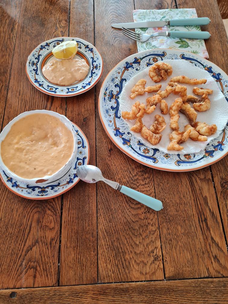 Frittierter Seeteufel mit Garnelenmayonnaise