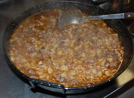 Bei Gazpacho denken wir Deutschen automatisch an die bei uns bekannte gazpacho andaluz, eine kalte Gemüsesuppe. Ich möchte heute von der Gazpacho manchego berichten, einem typischen Wintereintopf, der nichts mit der andalusischen Suppe zu tun hat, aber wie diese im ganzen Land bekannt ist. Diese Gazpacho ist eins der Nationalgerichte der Region Castilla-La Mancha, die vor allen Dingen aus magerem Wildfleisch (Niederwild wie Kaninchen, Rothuhn, Fasan und Wachholderdrosseln, die in unserer Gegend gerne gejagt werden) besteht, gewürzt mit Knoblauch und Pfeffer, Lorbeerblatt, Thymian, Rosmarin, Paprika (pimentón de la Vera) und zusammen mit Tomaten gekocht wird, in die eine Art Fladenbrot (tortas cenzeñas/torta de gazpacho) gebröselt wird, das im Holzofen aus Getreidemehl, Salz und Wasser hergestellt wird (im Mercadona gibt es ersatzweise auch das Ruiz de la Roda.