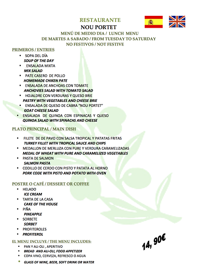 Wir besuchten gestern das "el nou portet" zwischen Alcalali/Parcent und Orba. Das Restaurant ist hübsch restauriert und mit großer Terrasse, es geht etwas edler zu mit Tischdecken und Stoffservietten, die Gäste sind wie überall meist Engländer. Die Küche wirbt mit tradicionell mediteran. Von den Speisen waren wir sehr angetan - das Ajoli war selbstgemacht, die Vorspeisen waren alle lecker (wir waren 6 Personen und jeder probierte etwas anderes), es gab überbackener Ziegenkäse oder gemischter Salat oder Crepes gefüllt mit Spinat oder Hühnerleber auf Toast etc. Auch die Hauptspeisen überzeugten (Bacalao, Salmon, Rape oder Fleisch etc.) Zum Dessert dann Eis oder Tarta oder Mousse oder Melone oder Kaffee. Die Preise lagen zwischen 15 und 20 € incl. Getränke (Wein, Wasser, Bier), die Steakgerichte etwas teurer.