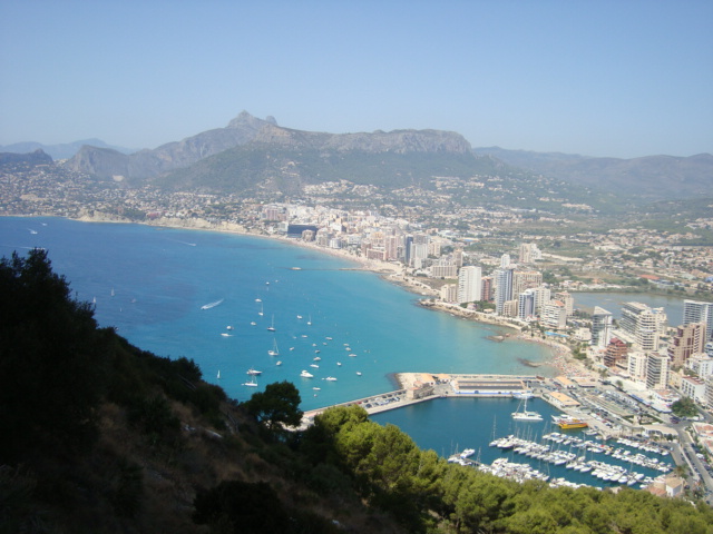 An Silvester 2011 machte ich einen Spaziergang bis zum Tunnel des Peñón de Ifach, also etwa halbe Höhe. Da nach dem Durchbruch eine etwas kritische Stelle kommt und ich leider nicht mehr ganz schwindelfrei bin, wollte ich kein Risiko eingehen und kehrte um. Auch von diesem Standpunkt hat man eine tolle Sicht auf die Stadt. Und da mich das Christkind mit einer neuen Kamera überraschte, probierte ich diese gleich aus.