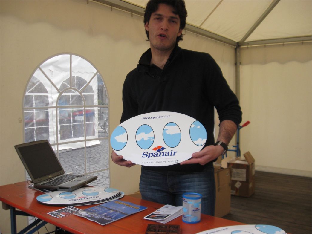 Und dann beim Stand von Spanair bei einem netten jungen Mann aus Zaragoza, konnte man gleich Flüge nach Spanien buchen und 1-Euro-Lose kaufen, um ein Flügticket für 2 Personen zu gewinnen! Hoffenlich haben wir gewonnen!!!
