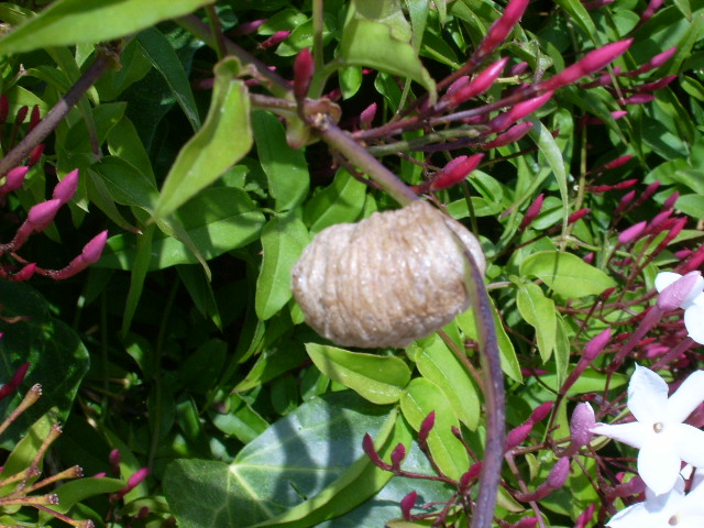 Es sind die Kokons einer Gottesanbeterin. Ich habe die Gottesanbeterin schon oft