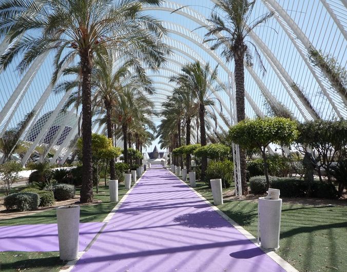 Die elliptische Mehrzweckhalle aus Stahlrippen mit einer Grundfläche von 5.000 qm und einer Höhe von 80 m wirkt wie ein riesiger Helm, der im geschlossenen Zustand einem spanischen Konquistadorenhelm und im geöffneten Zustand einem Generalhelm ähnelt. Die Kongress- und Veranstaltungshalle, die 5.000 Zuschauern Platz bieten soll, liegt zwischen dem Puente de l'Assut de l'Or und dem Oceanogràfic und soll nach nur 13 Monaten Bauzeit in diesem Monat eingeweiht werden, denn vom 31. Oktober bis 8. November 2009 findet hier das Tennisturnier „Valencia Open 500“ statt.
