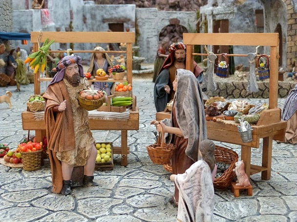 In der Markthalle in Valencia steht auch eine hübsche Krippe. Dort ist nicht nur Jesus geboren