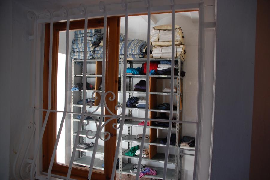 Über eine Außentreppe des Neubaus gelangen wir in die ersten Etage, wo sich Zimmer an Zimmer reiht. Hier sind die Jungen in Doppelzimmern untergebracht. Alle Räume sind klein und zweckmäßig, jeweils mit zwei Betten, Schränken, Tischchen und Stühlen eingerichtet. Neben diesen Doppelzimmern gibt es auch Mehrbettzimmer, in denen Geschwisterkinder untergebracht sind, sie werden nicht auseinander gerissen. Montse erzählt uns von einem deutschen Paar, das auf der Straße lebt und deren fünf Kinder in der Einrichtung untergebracht sind bzw. waren... Doch dazu später noch einmal.