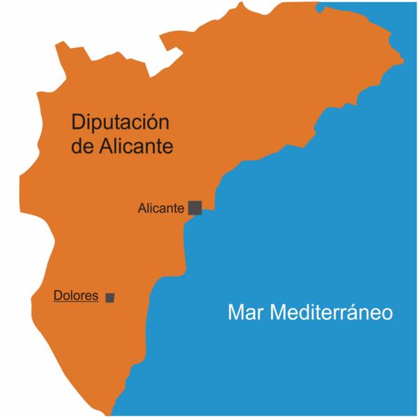 Dolores gehört zum Landkreis "Vega baja del Segura" (untere Flussebene des Segura) und liegt im fruchtbaren Flussdelta. In der huerta del bajo segura werden Zitronen, Orangen, Granatäpfel, Feigen, Datteln und Artischocken angebaut, deren Wachstum nicht nur die Bewässerung, sondern auch das milde Klima zugute kommt: Die Durchschnittstemperatur liegt im Dezember/Januar bei 16°C und im Juli/August bei 28°C.