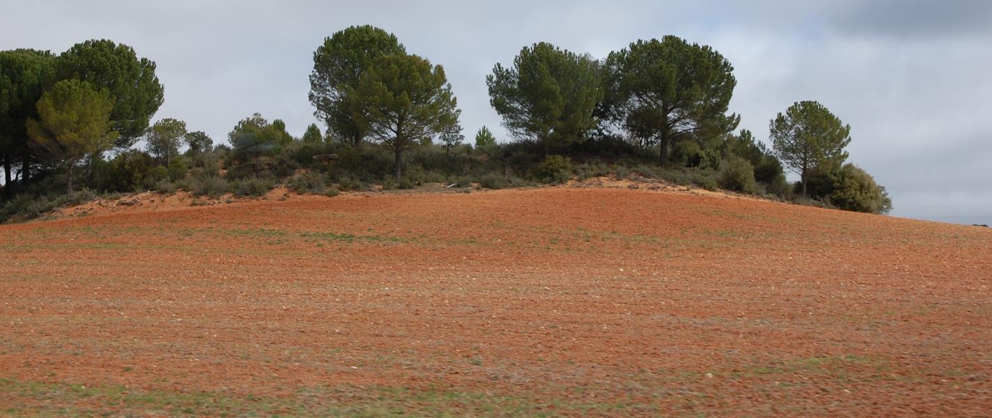 ,Die dunkelgrünen Pinien-, die Steineichenwälder, die solitären Bäume auf den Äckern, silbriggrüne Olivenbäume, die noch blattlose, graue Baumgerippe der Pappeln, das braune Holz der Weinstöcke; La Mancha ist das größtes Weinbaugebiet Spaniens. Die Weinberge sind im Muster angelegt, das man marco real oder cuadrado nennt