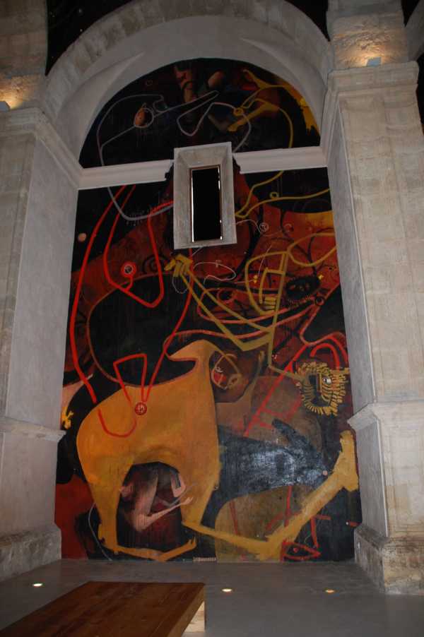 1994 begann der damals 23jährige Conquenser (geb. in Cuenca) JESÚS MATEO nach dem Studium der Rechtswissenschaften (1989-1993) und begann anschließend ein Studium der Kunstgeschichte. 1994 fing Jesús Mateo an Skizzen zu fertigen, nach denen er den Innenraum der Kirchenruine San Juan Bautista zu bemalte. Sein Werk sollte er erst sechs Jahre später beenden.