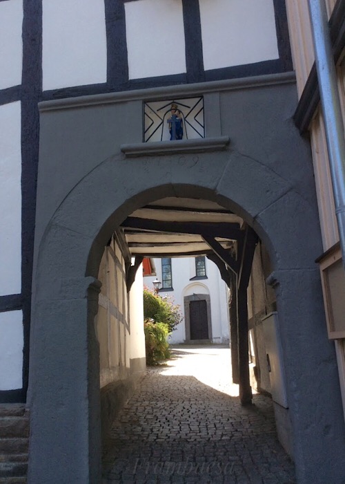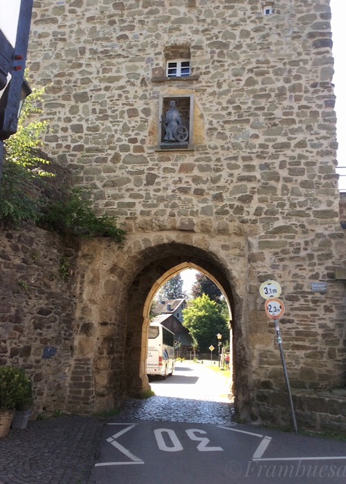 Vom Katharinentor aus geht es durch die malerischen Gassen gepflegter Fachwerkhäuser ein wenig bergab
