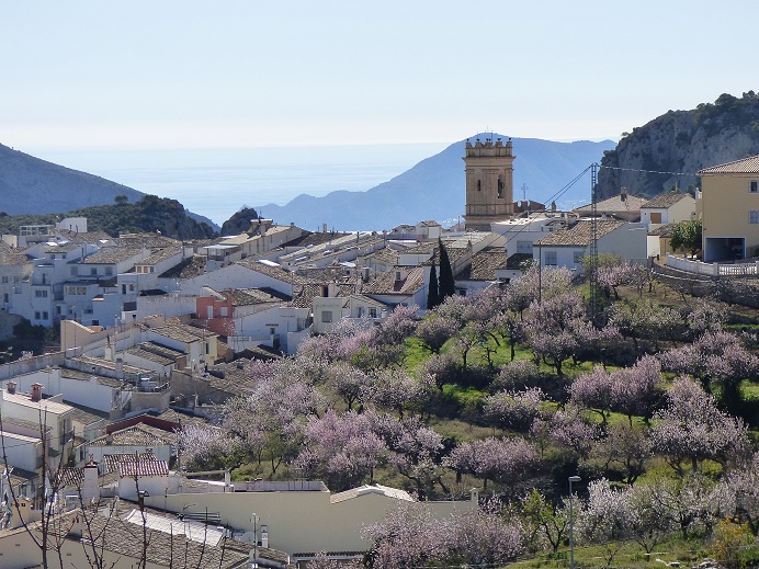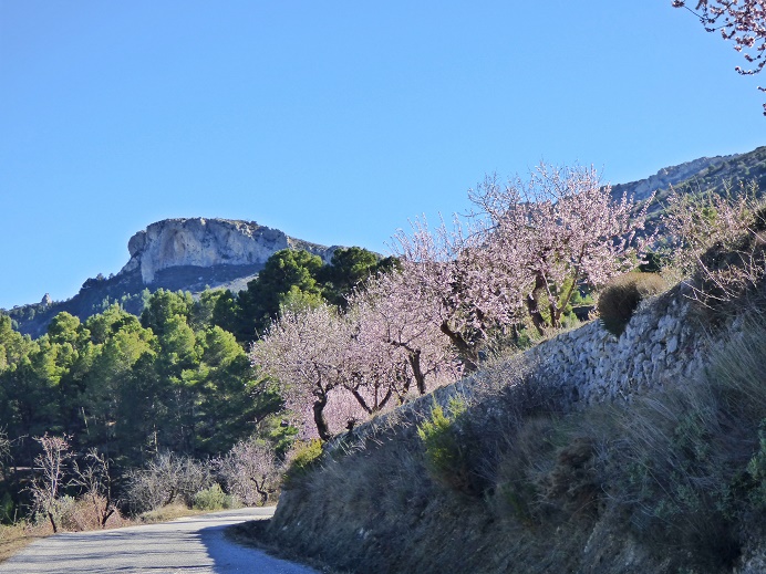 Weiter gings ins Guadelest-Tal. Hier lohnt sich inzwischen eine Mandelblütenfahrt, obwohl es viele leere Bancales gibt (wenn man die Gegend vor einigen Jahren her kennt).
