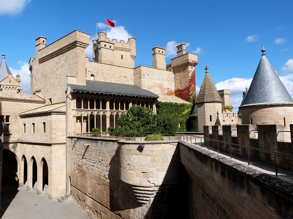 Ich spielte als erstes "Burgfräulein", während Citronello sich unter die Festeros mischte. Der Palacio Real de Olite diente bis zur Vereinigung Navarras mit Kastilien im 16. Jh. als Residenz der Könige von Navarra. Unter König Karl III. (1361-1425) kam es zu bedeutenden Veränderungen. Seit 1925 steht der Komplex unter Denkmalschutz. Der Palast wurde 1937 vollständig rekonstruiert. Im alten Palast ist ein Parador-Hotel untergebracht. Bei der Besichtigung im Palacio konnte man sich frei bewegen und auf jedes Türmchen steigen. Es sind keine Möbel etc. vorhanden, eine Ausstellung zeigt Fotos und Pläne der Rekonstruktion. Die engen Gassen von Olite laden zu einem Bummel ein. Wappenbesetzte Herrenhäuser aus Naturstein Gassen mit gotischen Torbögen eindrucksvolle Kirchen alles zu sehen, dazu reicht die Zeit nicht.