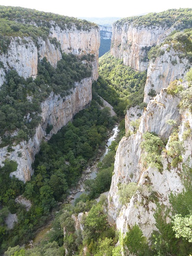 Wir aber wollen weiter in die Berge. Eine kurze Wanderung in der Foz de Lumbier war geplant. Leider versagte unser Navi durch eine große Baustelle an einer neuen Autobahn? und so sahen wir die Schlucht nur von weitem. So fuhren wir weiter zur Foz de Arbayún wo wir viele Geier beobachten konnten, die über der Schlucht kreisten.