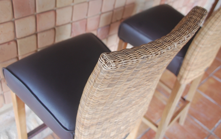 Angeregt durch camahewes positive Erfahrungen, haben wir deshalb zwei Barhocker zu der Rushworths Upholstery bei Gata gebracht. Nach einer Woche konnten wir unsere Stühle abholen und sind mit dem Ergebnis sehr zufrieden, da die zusätzliche Kante am Rand des Sitzes für Laien wie mich nicht wirklich einfach zu nähen war.