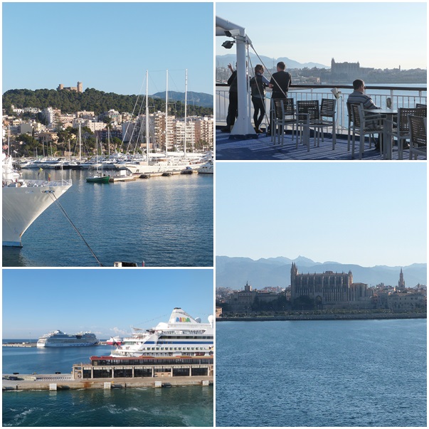 Nach 21 abwechslungsreichen Tagen wartete die Fähre in Palma auf uns, ein letzter Blick zurück auf die Kathedrale und das Castell de Bellver und während auf den Kreuzfahrtschiffen die Passagiere frühstückten und im Minutentakt Flugzeuge über Palma einflogen, legten wir pünktlich um 8 Uhr morgens ab. Adiós Mallorca! Unterwegs überholte uns ein anderes Schiff der Balearia. Holá Ibiza!