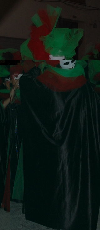 Ich fand dieses Kostüm sehr schön - die Köpfe hatten zwei Gesichter. Am Hinterkopf hatten sie eine Art "venezianische Maske" (Volto bianco) angebracht. Das sah sehr verwirrend aus. Herzlichen Glückwunsch, Florecilla!