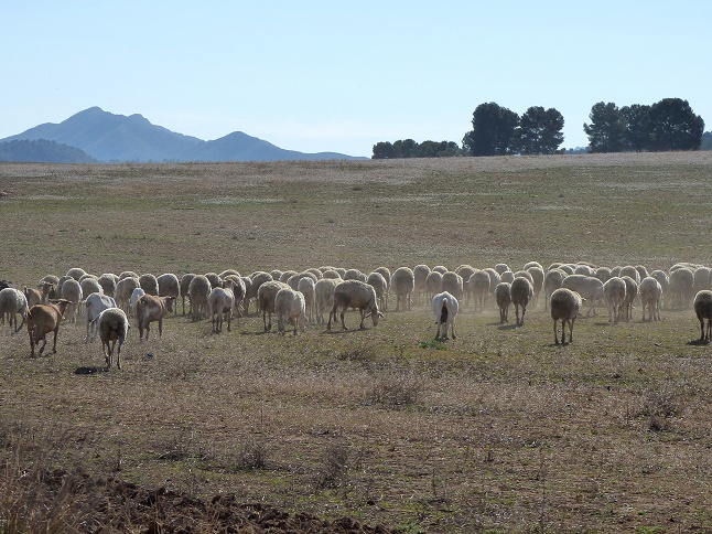 Nach einer ruhigen Nacht im Kloster fuhren wir noch westlicher, unser Ziel war Yeste in der Provinz Albacete. tolle Landschaft, kaum besiedelt Ein Schäfer zieht mit seiner Herde durch die Lande. Der Embalse de la Fuensanta liegt eingebettet in den Bergen. Kein Mensch weit und breit Gegen Spätnachmittag kamen wir in Yeste an, wo wir wieder übernachteten. Eine mächtige Burg überragt das Dorf. Ein besonderes Erlebnis war am Abend die Fernseh-Übertragung eines wichtigen Fußballspieles in der Dorfkneipe