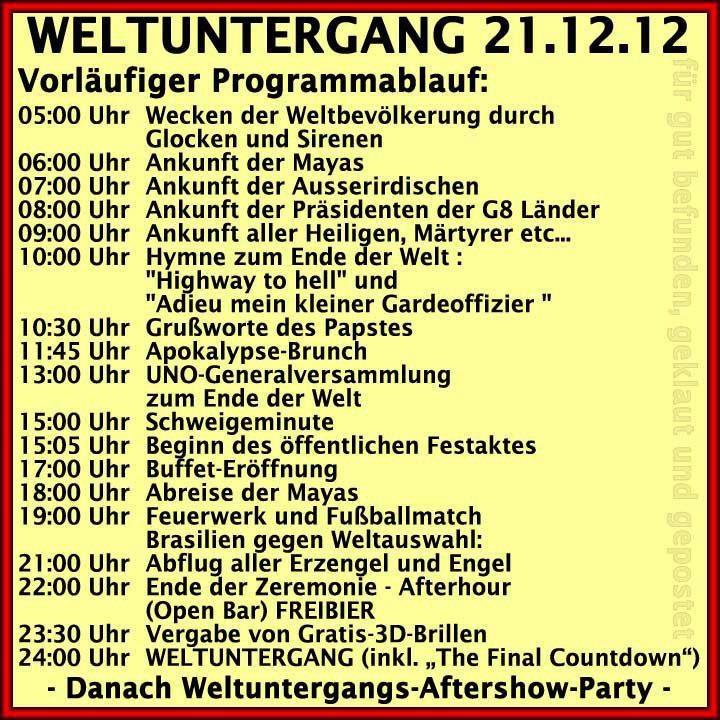 Weltuntergang mit anschließender Aftershow -Party![]()