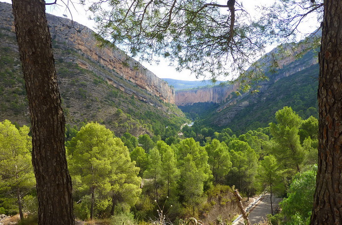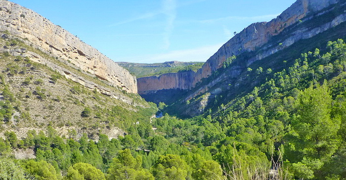Im Bereich des Stausees verlässt man die Enge des Canons. Hier der Blick zurück zu der Stelle, wo der Turia sich durch den Fels gefressen hat.