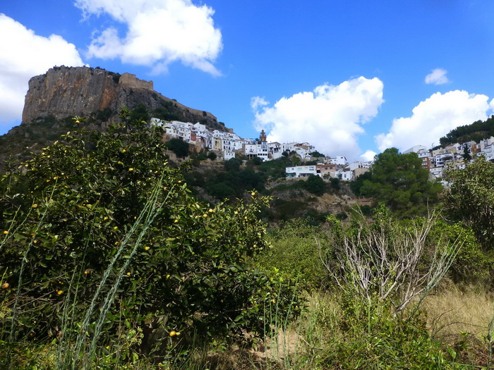 Am 2. Tag wollten wir eine etwas längere Wanderung unternehmen: Die Ruta de Los Pantaneros, eine 16 - km - Runde, die zum Teil hier schon angesprochen war. Startpunkt war der Parkplatz am oberen Ende von Chulilla. Hier ein Blick von unterhalb des Parkplatzes. Das Dorf zieht sich bereits von hier bis zum im Bild sichtbaren Teil.