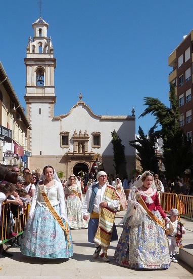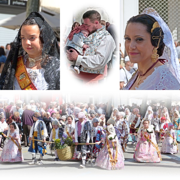 Die Blumengabe in Denia ist fuer mich immer etwas besonderes: in Valencia ist es eine grosse Show und schon am Tag zuvor beendet. In Denia bekommt Maria ihr Kleid zum Vater-(Josef-)tag: klein aber sehr fein :!: