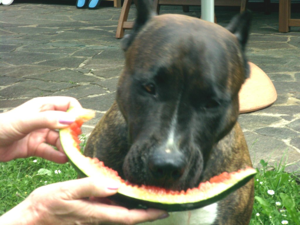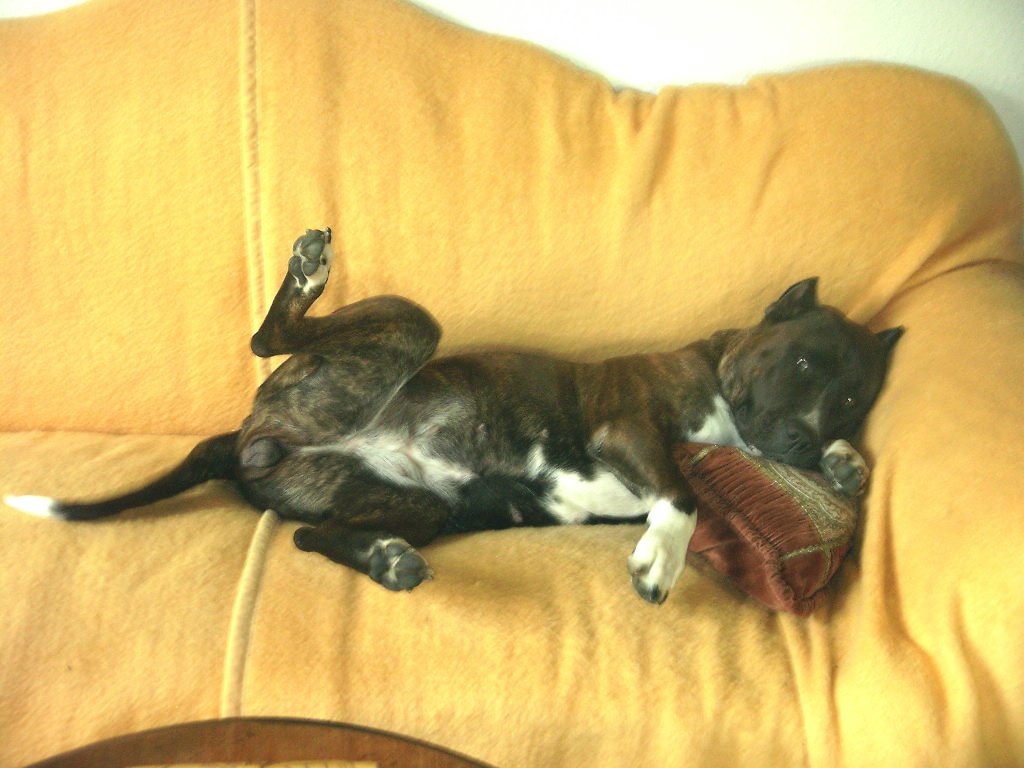 Das war unsere Alono-Hündin, die ich von meiner Nichte " erbte " Leider wurde sie nur 6Jahre alt, aber wir hatte NIE irgendein Problem mir ihr, sie hörte auf's Wort. Meist geht ja die Gefahr eines solchen Hundes von DEM am Ende der Leine aus !!