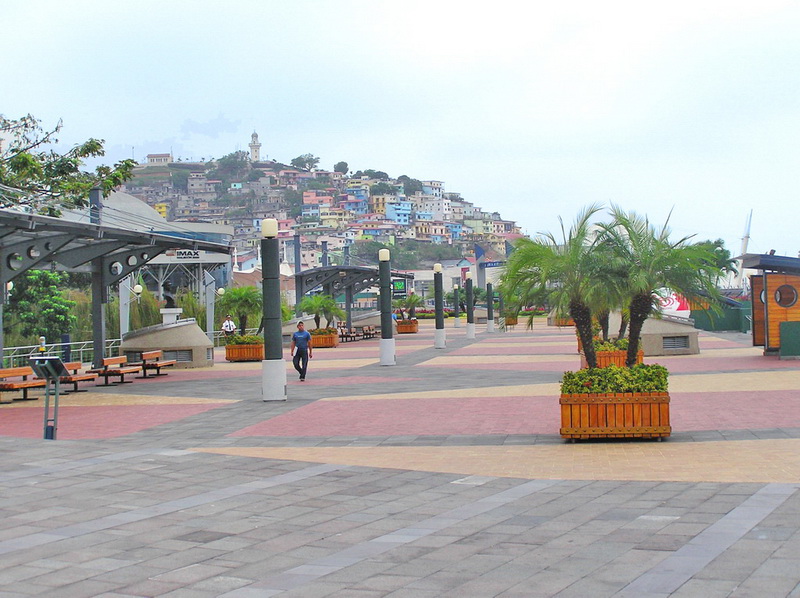 Anschließend wandern wir durch die Stadt hinunter zum Rio Guayas, an dessen Ufer man eine wunderbare Fußgängerzone mit einer Länge von über zwei Kilometer errichtet hat, den „Malecón 2000“.