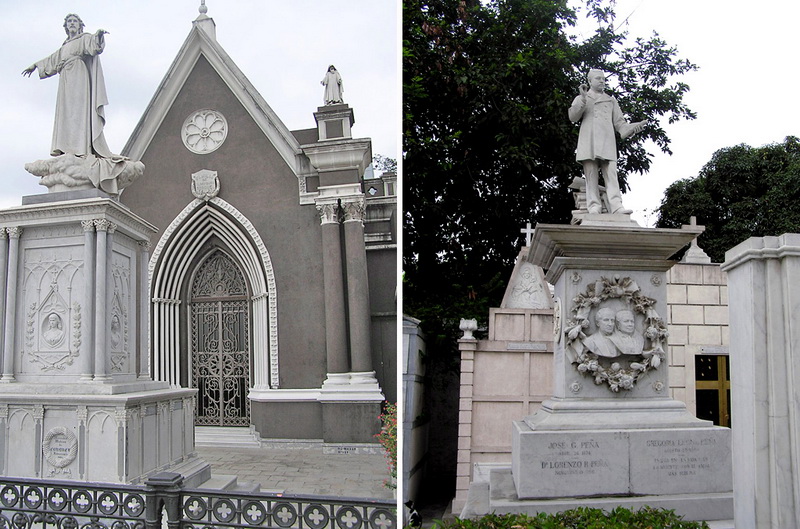 Im Zentrum des weiten Geländes liegen die protzigen Grabstätten der „Reichen“ und „Wichtigen“, zum Teil in Carrara - Marmor ausgeführt.