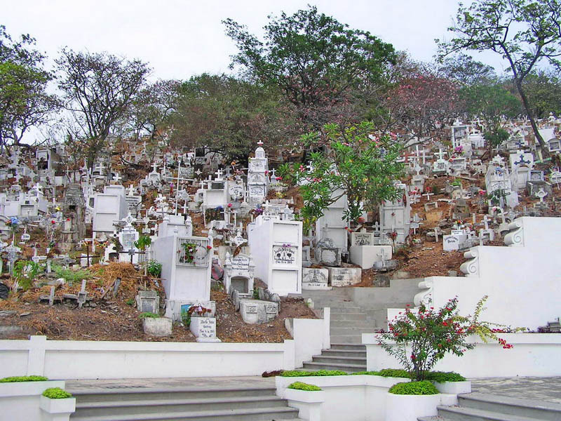 Weiter außerhalb ziehen sich die Gräber der Ärmeren dicht gedrängt an den Flanken der Hügel nach oben. Sie werden teils Opfer der Witterung, denn der Regen legt Kreuze und Gräber frei, so dass vieles in Schieflage gerät oder sogar zerstört wird.
