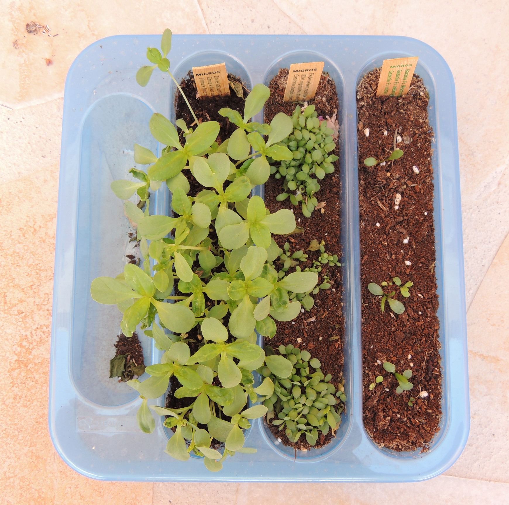-die Zinnien müssen jetzt pikiert werden, sonst werden sie geil --