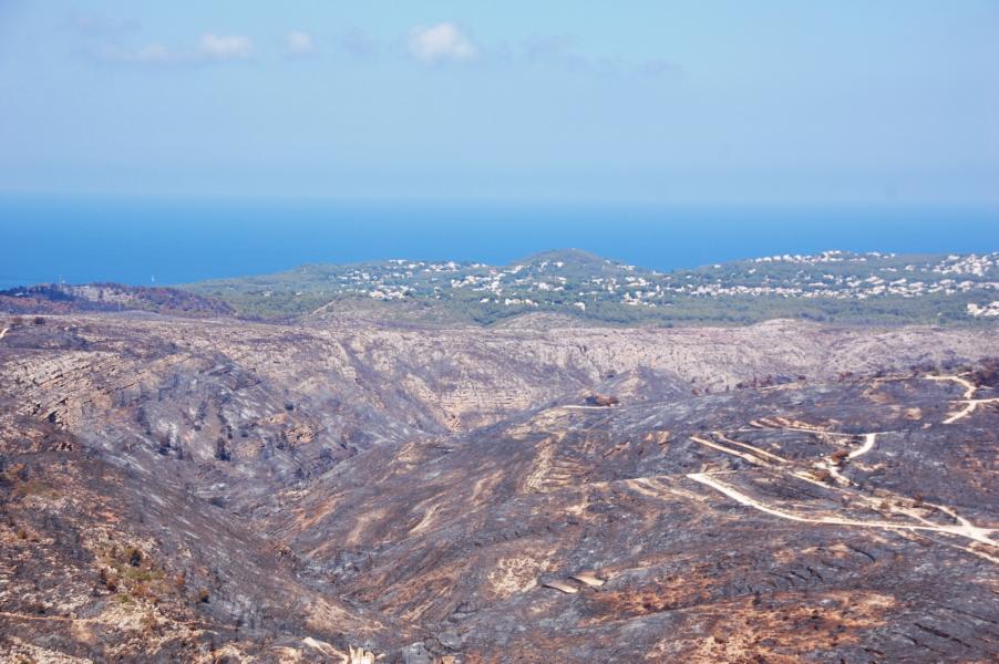 Ich bin heute diese Strecke gefahren, da ich mir ein eigenes Bild von der Umweltkatastrophe machen wollte. Ich habe viel verbrannte Erde im Naturpark Granadella gesehen, zwischen der riesigen Urbanisation "Cumbre del Sol" (Gemeinde Benitachell) und der Granadella-Bucht. Da sind zwar viele Pinien und Macchie verbrannt, doch die Macchienvegetation wird sich regenerieren.