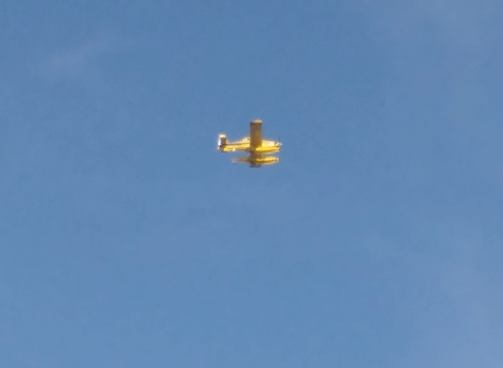 Also nach meiner Rechnung ist das Feuer somit keine 1,5 Minuten (mit dem Löschflieger) entfernt. Gehen wir mal von 100km/h aus wären was 2,5km Entfernung, Allerdings muss er natürlich nach dem Wasserabwerfen auch noch drehen, also definitiv unter 2km Entfernung würde ich sagen.