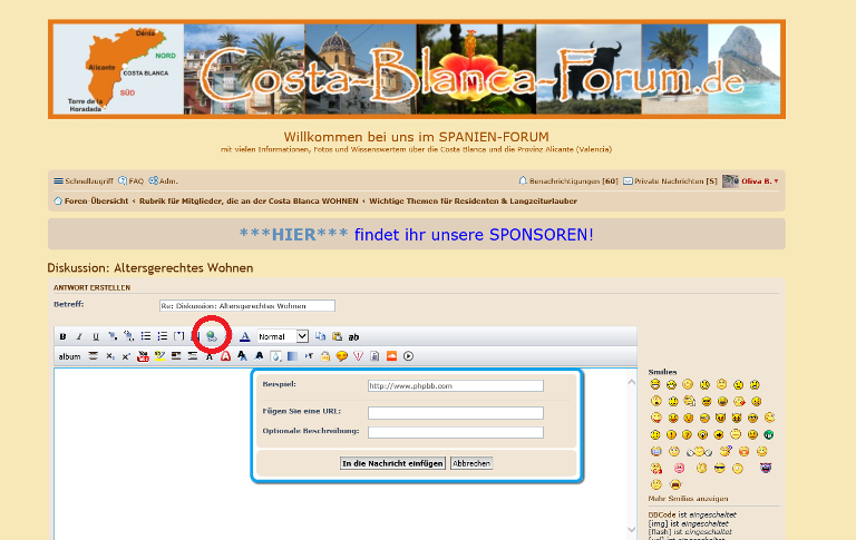 Dort fügst du die URL ein und darunter den eigenen Kurztext.