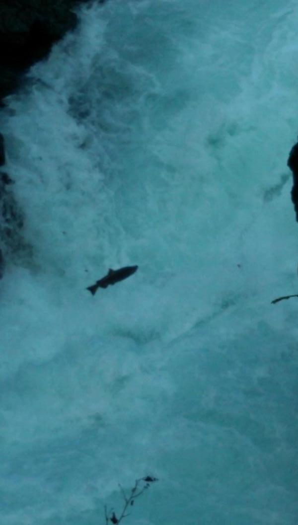 Die Lachse müssen diese Stromschnellen hinaufspringen um an ihre Laichplätze zu kommen. Leider sind sie hierbei nur sehr schwer zu fotogafieren.