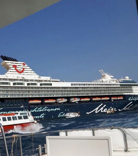 Im Vorfeld hieß es, dass Mykonos an diesem Tag von 5 Schiffen angefahren werden sollte und wir machten uns schon Sorgen, dass die Insel mal eben für ein paar Stunden die Bevölkerungszahl verdoppelt. Aber weit gefehlt ... aufgrund des eher unruhigen Meeres haben wohl bis auf zwei Schiffe alle umgeroutet und die Insel nicht angelaufen. Mykonos ist ein Tenderhafen, d. h. ein Anlegen an der Pier im Hafen ist wegen einer zu geringen Wassertiefe nicht möglich, es wird geankert und mit Hilfe der Tenderboote ein Hol-und-Bring-Service für Passagiere und Crew eingerichtet. Das Tendern verzögerte sich aufgrund des zwar sonnigen, aber windigen Wetters und wurde letztendlich auch vorzeitig abgebrochen und nur noch die auf der Insel befindlichen Passagiere zurück an Bord gebracht.