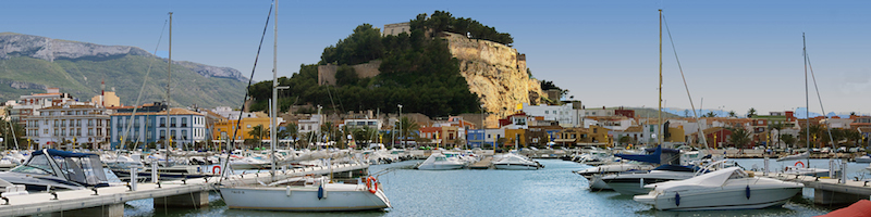 Von dieser Seite des Hafens hat man einen wunderschönen Blick auf die "Skyline" von Denia: