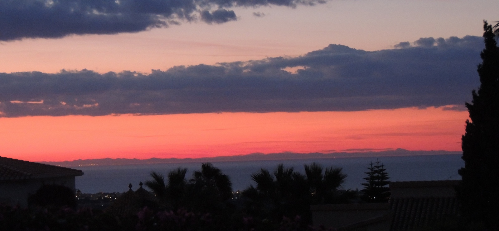 Und noch eine Abendstimmung mit besonderer Ausstrahlung. Im Vordergrund die Korkeichen die beim grossen verheerenden Waldbrand vom letzten Jahr arg gelitten haben. Abgestorbene Äste, vom Tramontana "gezeichneter" Bäume, ragen in den Abendhimmel, während die Jungtriebe in den unteren Teilen der Bäume den Lebenswillen der Bäume zeigen.
