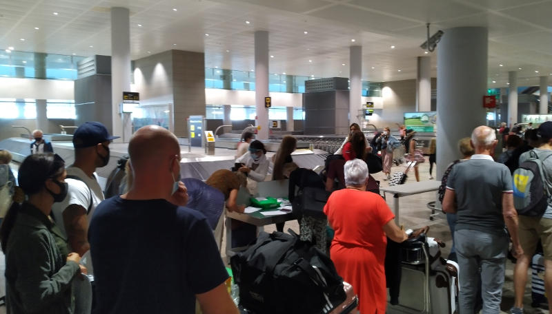 Ankunft In Alicante 15 Minuten vor der Zeit. Im Flieger weniger Ausstiegsgedrängel als befürchtet. Alle Passagiere wurden mit zwei Bussen zum nordöstlichen Fußgänger-Eingang gebracht. Ab hier wurde es dann schon ein wenig chaotischer. In der Gepäckhalle wuselten 3 oder 4 Fliegerladungen Leute durcheinander. Wo bekomme ich mein Aufgabegepäck? Kann ich mal aufs Klo? Ist hier das Ende der Warteschlange für den Ausgang? Was sind das für Tische? Bitte was muss ich ausfüllen?