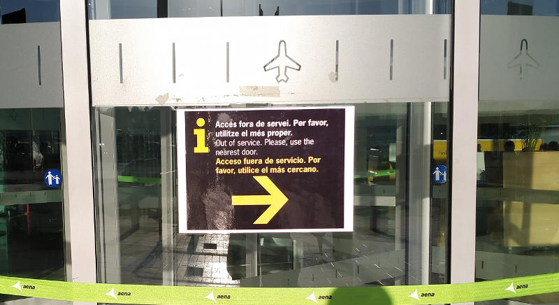 Im Prinzip sind nur die Mitteleingänge offen, die links neben den Fahrstühlen. Der Geldautomat im Ankunftsbereich verspricht Pfund, Dollar oder Euro. Kann aber nicht liefern ("Aus technischen Gründen..."). Freundlicherweise gab es ein funktionierendes Trio dieser Automaten im Abflugbereich ganz oben. Auch der gewohnte Bus-Abfahrtplatz nach Torrevieja vor dem Abflugbereich wurde nicht bedient: ein Schild weist den Weg zur untersten Ebene -2, Busabfahrtplatz 28. Dort endlich angekommen und nun auch mit Geldscheinen ausgerüstet stellte sich heraus, dass vor 21:00h sowieso nichts fährt.