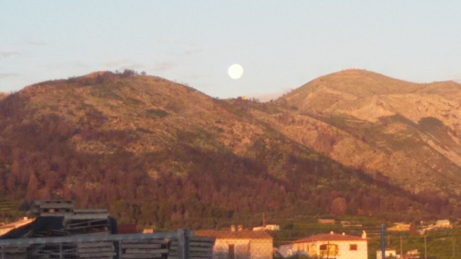 Morgendlicher Hundespaziergang in Pego am Friedhof........einmal der Blick in Richtung Meer, der andere Richtung Berge