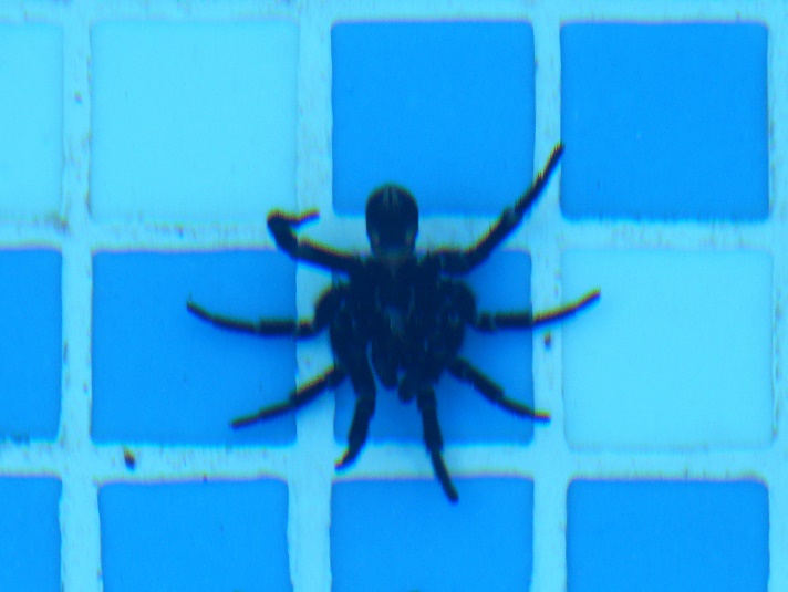 Achtung - auch wenn sie am Pool-Boden sitzen sind sie oft noch lebendig! Aber giftige Spinnen soll es hier nicht geben.
