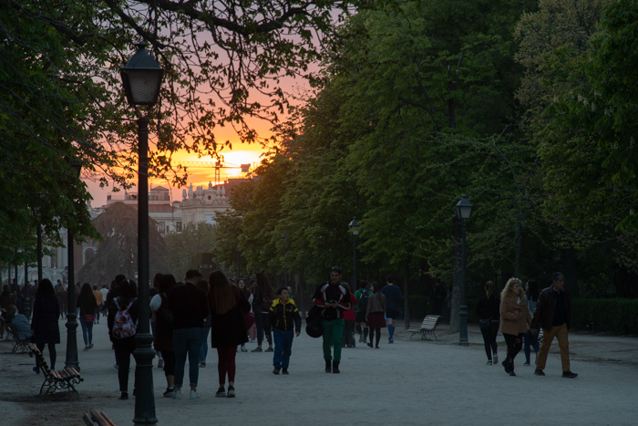 Der Madrid-Besuch bei bestem Wetter beginnt mit einem Rundgang in der nächsten Umgebung, Atocha Bahnhof, Cibeles-Platz, altes Postgebäude (das heute für Kunst und Kultur genutzt wird und für 3 Euro im 8. Stock einen tollen Panoramablick bietet) und der riesige Park, der wunderbar belebt war.