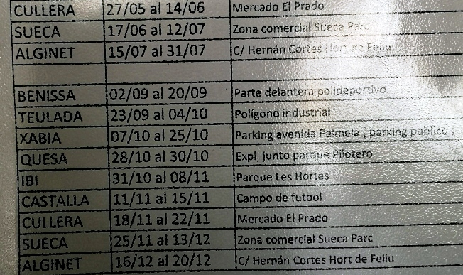 Im Juni/Juli ist die mobile Prüfstelle in der Provinz Valencia unterwegs, im August wird eine Sommerpause eingelegt, doch ab September erfolgen auch wieder Abnahmen in der Provinz Alicante.