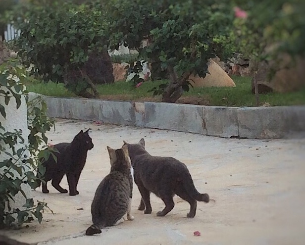 Nun wohnen wir seit zwei Wochen in einer schönen kleinen Anlage und erfreuen uns auch an den vielen Katzen der Nachbarn.