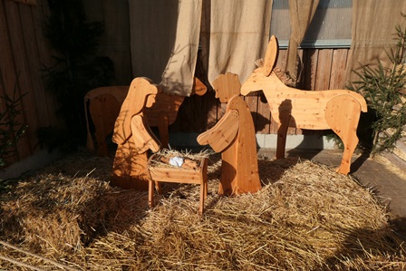Der Rundweg führt einmal durchs Dorf und zeigt verschiedene Stationen, die mit Hinweistafeln versehen sind, zur Weihnachtsgeschichte und weihnachtlichen Themen.