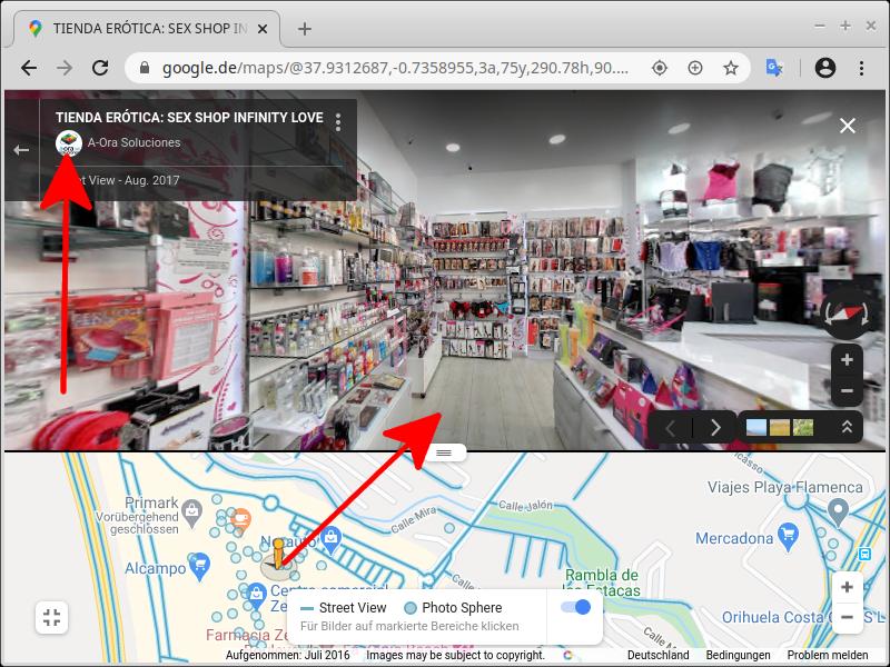 Google Street View jedenfalls ist das kleine gelbe Männchen, das in Google Maps oder Google Earth auf die gewünschte Straße gezogen werden kann. Fahren wir dazu mit dem PC zum La Zenia Boulevard. Das größte Kaufmich an der Costa Blanca Süd. Geschäfte für Plastikschuhe, Geschäfte für Plastikkleider, allerlei Schnellessstellen und ein Baumarkt.